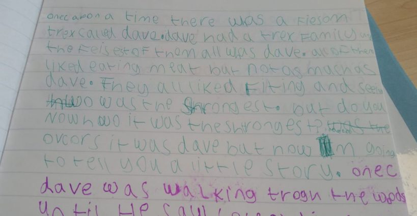 Sorry to outdo you, but 6yr old son's masterpiece about a T Rex called Dave is clearly winning the Booker Prize…. pic.twitter.com/ak7vaf1erS